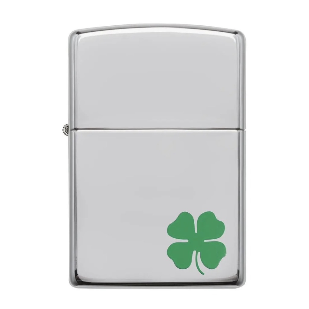 -Với thiết kế vỏ bằng đồng thau, mạ chrome bóng trọng lượng của chiếc bật lửa mang lại cảm giác thật nhẹ nhàng trong lòng tay bạn. Sắc ánh bạc, đánh chrome bóng khoác mình lên chiếc Zippo, điểm nhấn nhỏ xinh, tươi xanh mát của cỏ bốn lá nơi góc dưới phải.