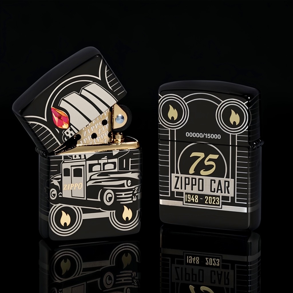 - Bộ sưu tập Armor ® High Polish Black này mô tả chiếc xe Zippo mang tính biểu tượng trong tất cả vinh quang của nó bằng cách sử dụng quy trình Photo Image 360° của Zippo, mở rộng thiết kế xung quanh tất cả các mặt của tác phẩm. Laser Two-Tone được sử dụng để lộ ngọn lửa Zippo và biểu tượng kỷ niệm 75 năm bằng đồng thau sang trọng, trong khi ống khói của xe được chiếu sáng bằng pha lê màu đỏ lấp lánh, được chọn đặc biệt cho phiên bản Châu Á.