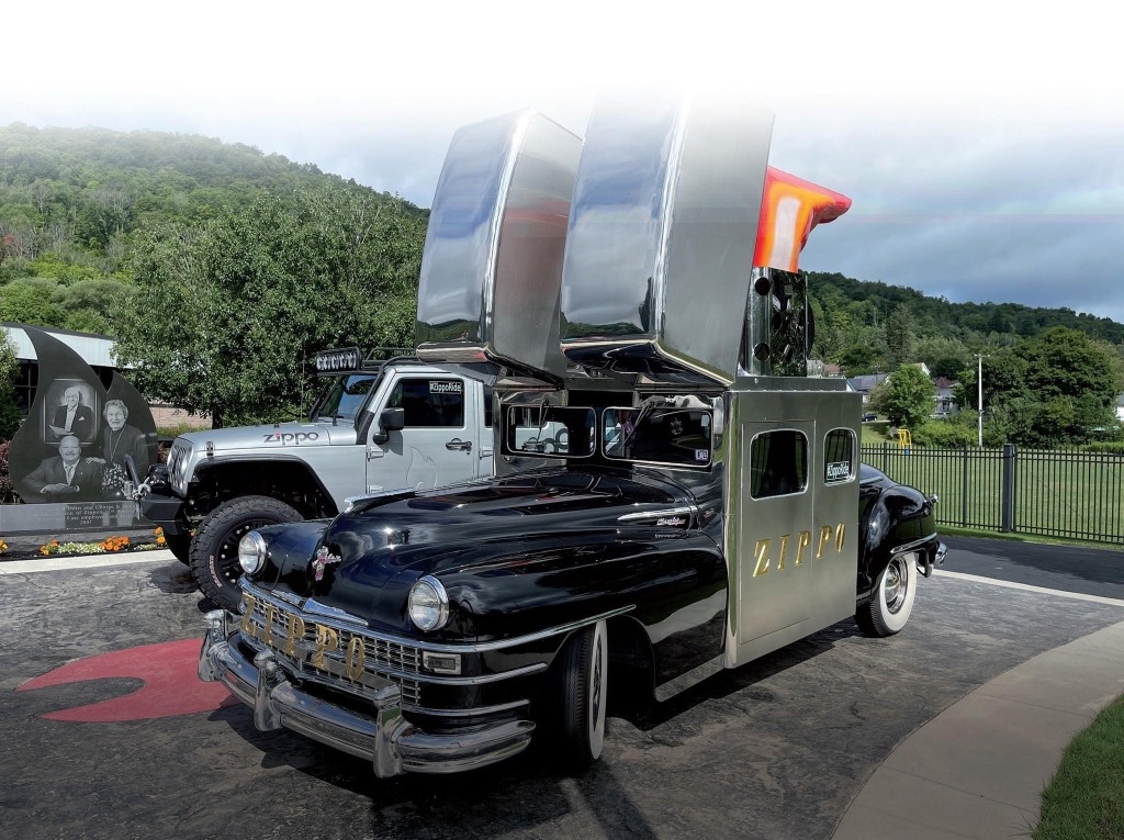 - Lấy cảm hứng từ một cuộc diễu hành của “sản phẩm di động”, người sáng lập Zippo, George G. Blaisdell, đã đại tu hoàn toàn chiếc Chrysler Saratoga 1947 thành một cặp bật lửa chống gió Zippo lớn hơn đời thường. Cảm giác ngoạn mục và sẽ tiếp tục tham quan 48 tiểu bang liền kề, những người diễu hành rực rỡ và những người tham dự hội chợ ở bất cứ đâu nó đi qua.